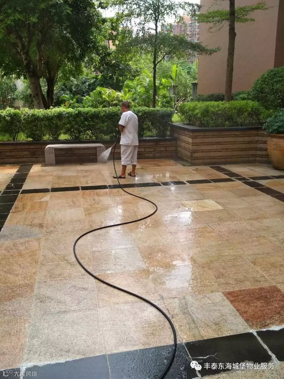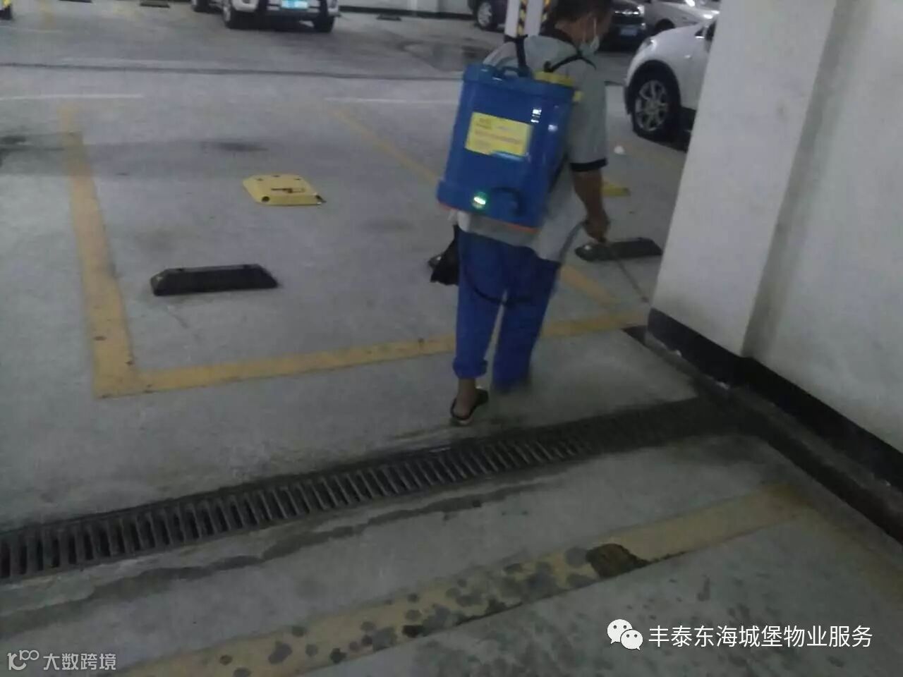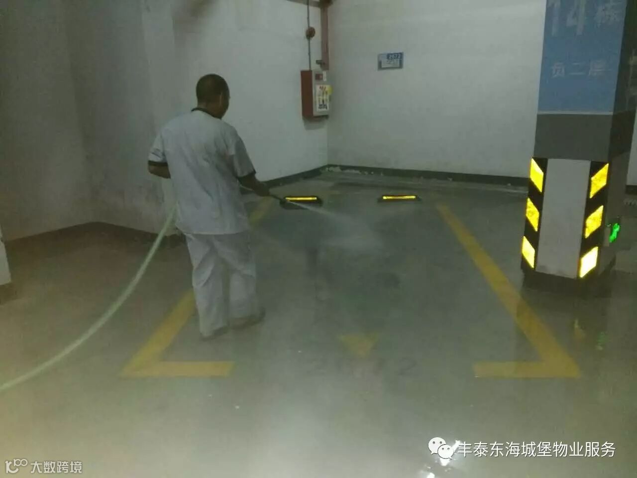 4、对小区车库以及路面进行清洗