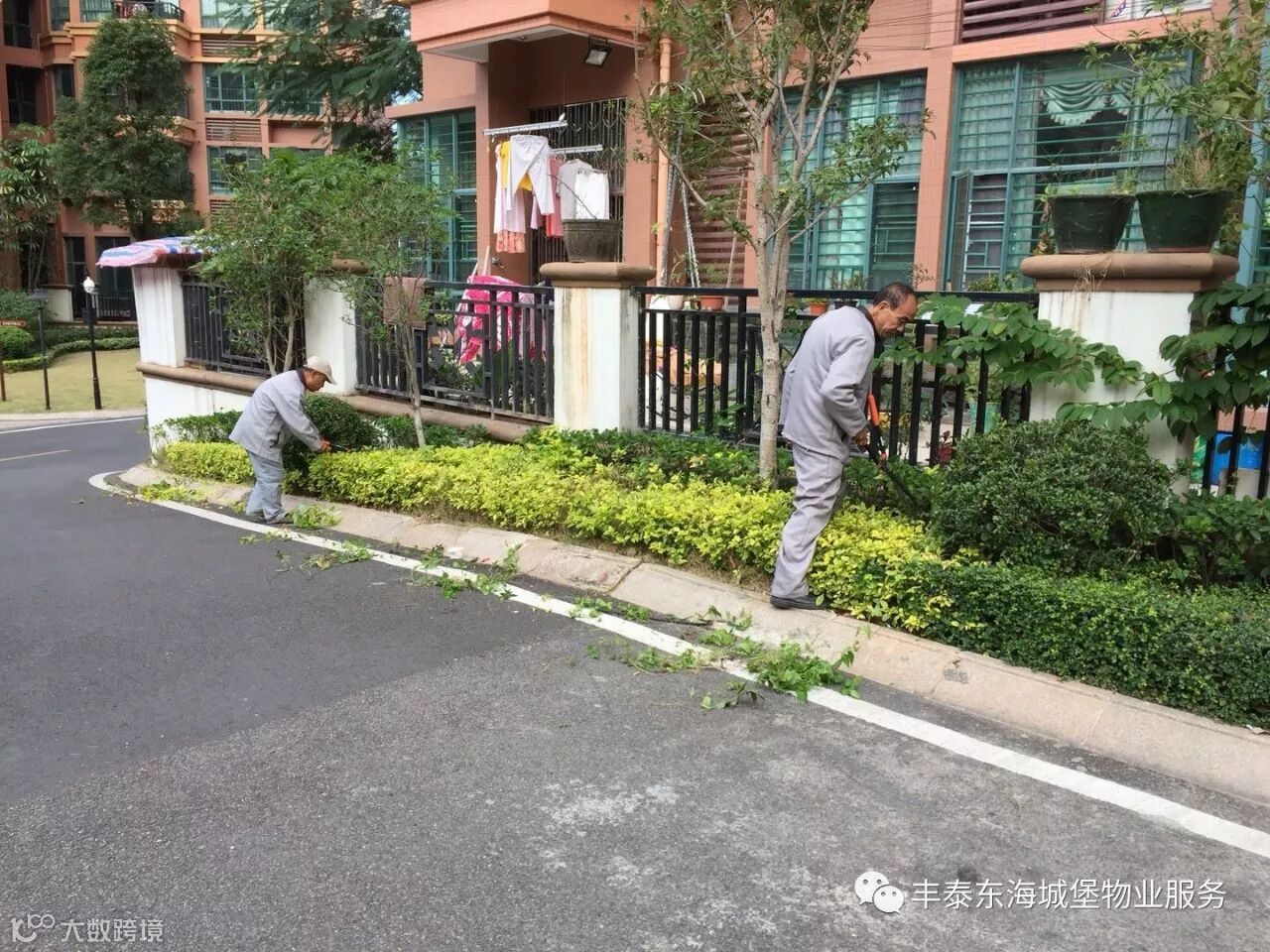 3、对13栋绿化带进行修剪