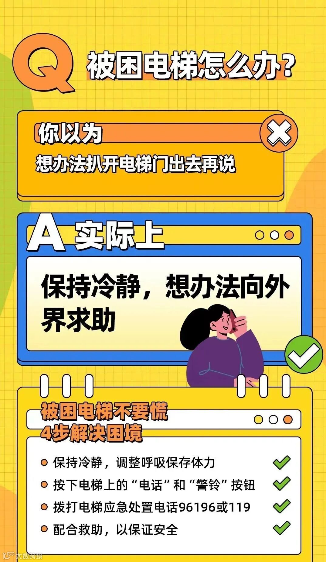 被困电梯不要慌,以下4步措施可解决当前困境: