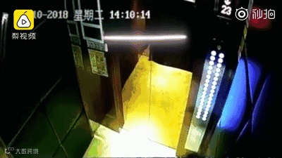 下面这个小男孩玩游戏把绳子绕在了脖子上,但是绳子在电梯关门被夹住了,他直接被绳子吊在了天花板上……