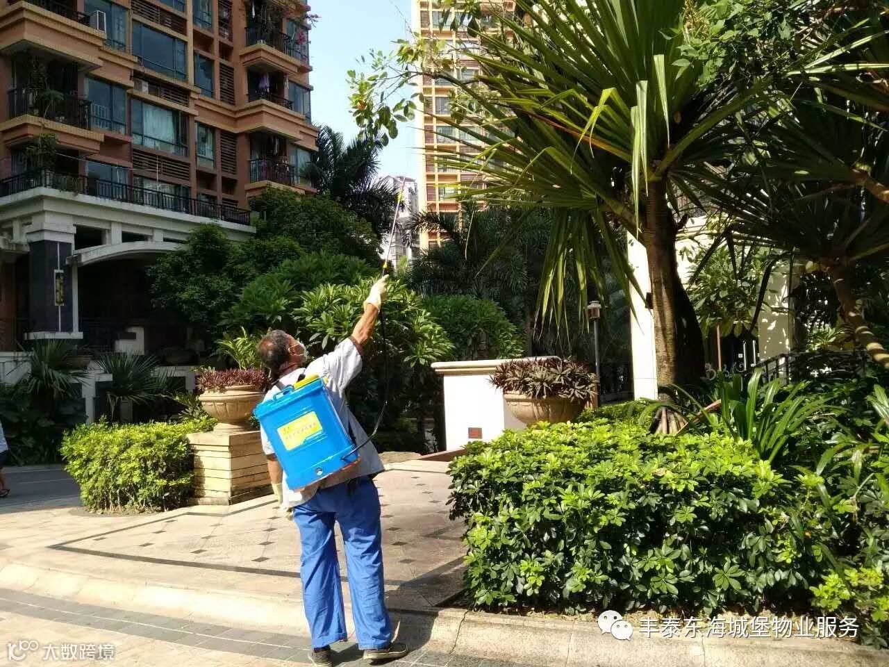 5、对小区绿化带进行喷药