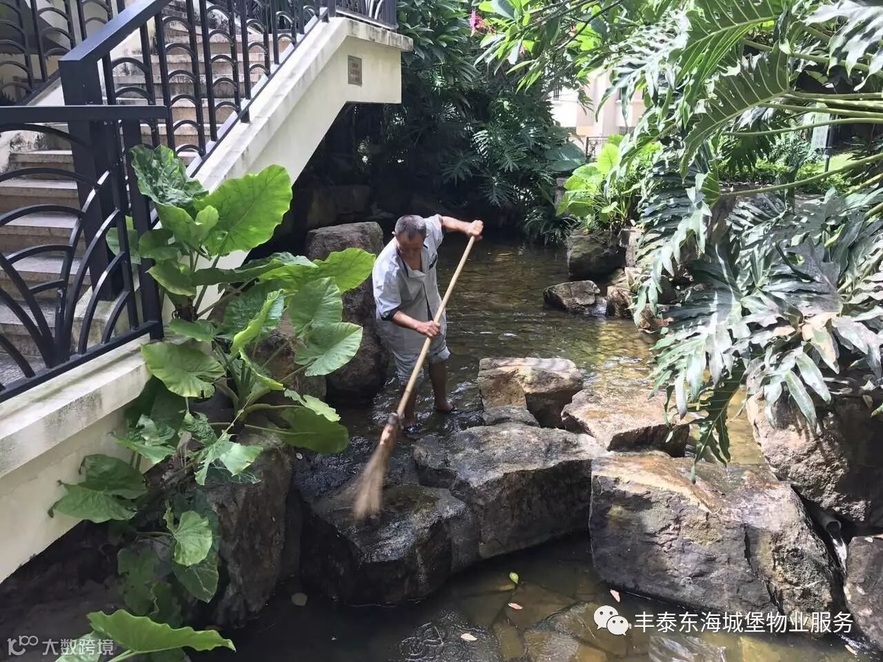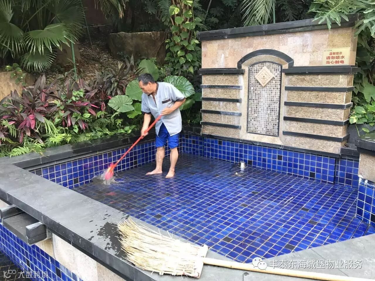 1、对小区水景池进行清洗