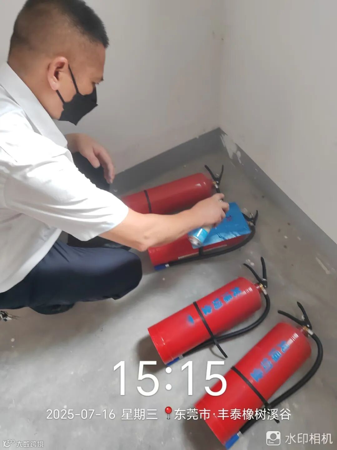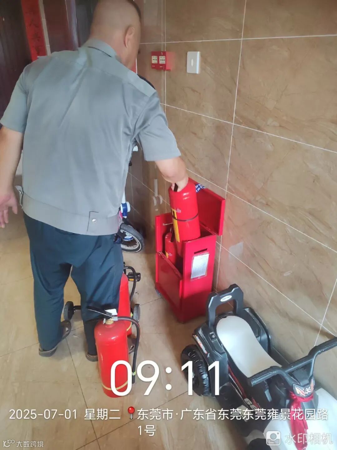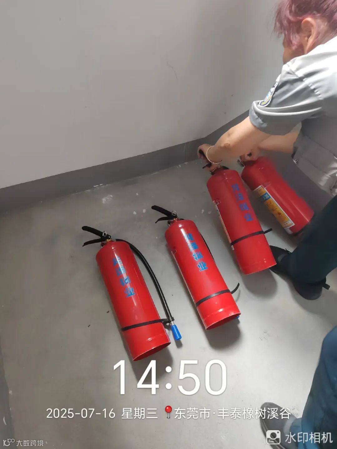 消防器材检查.换新,喷“龙泽物业”标记