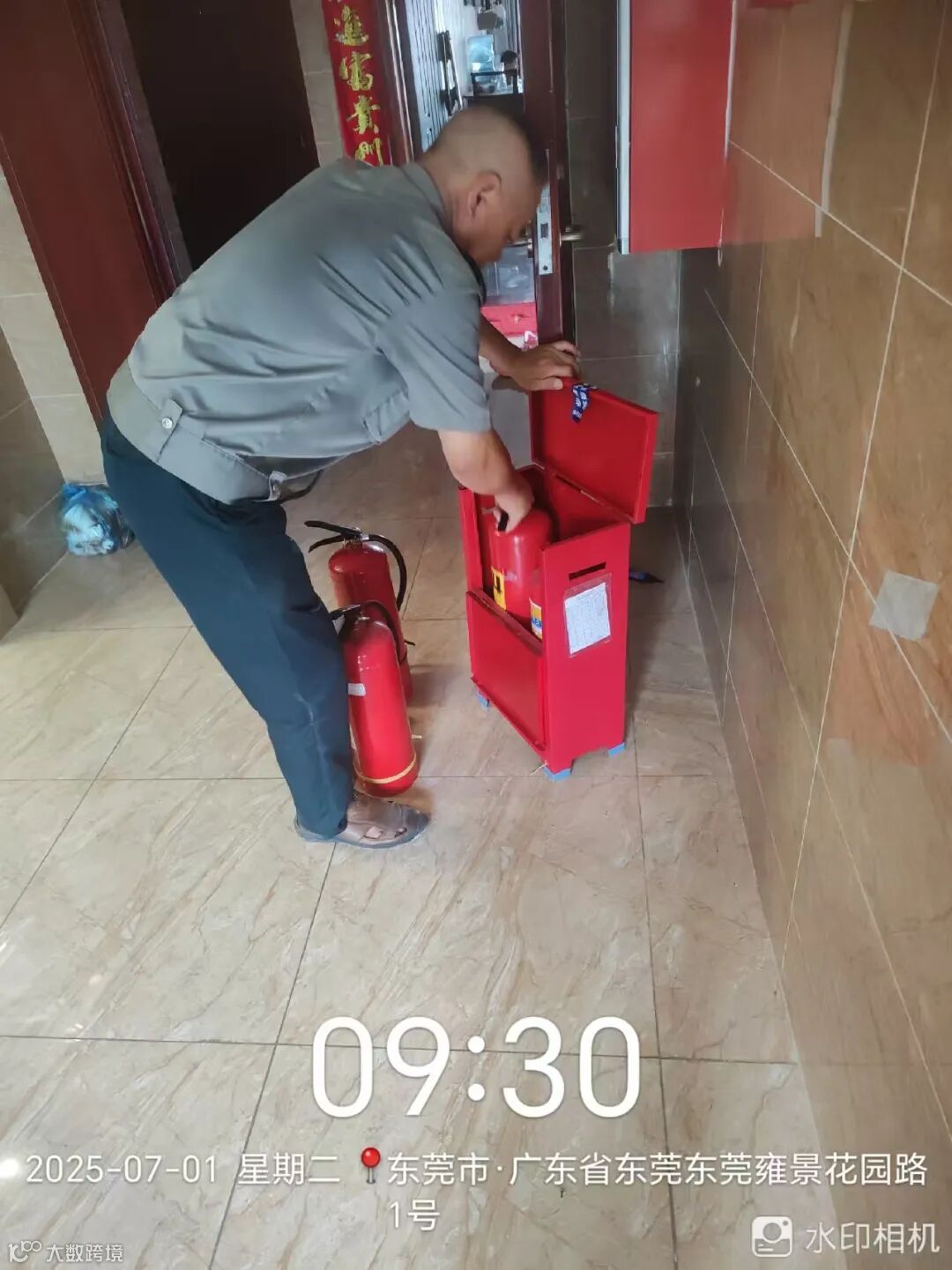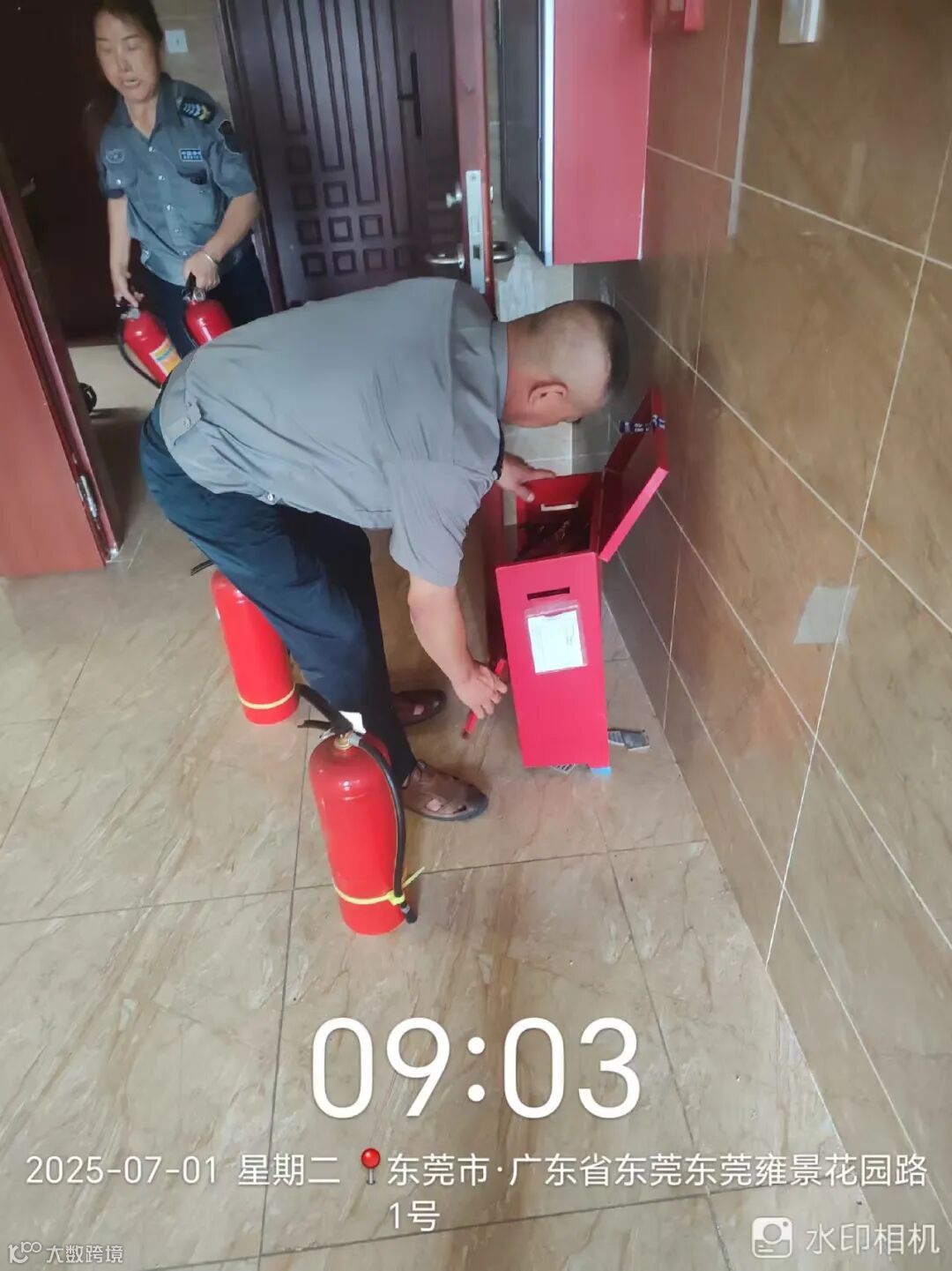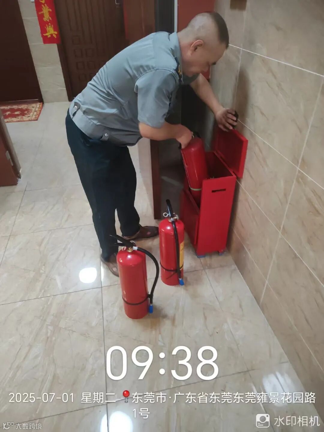消防器材检查.换新,喷“龙泽物业”标记