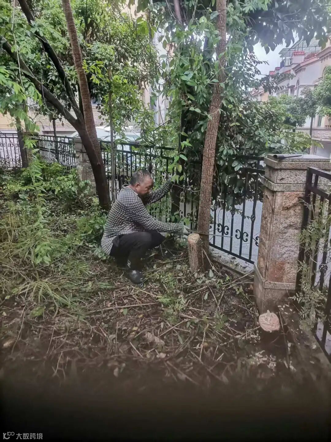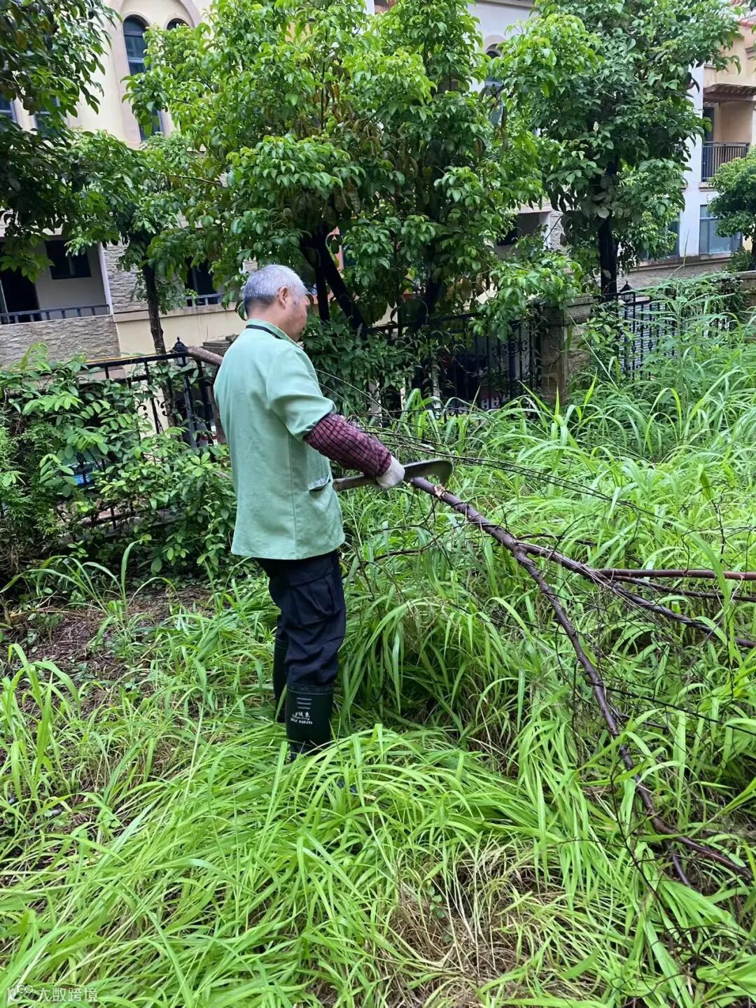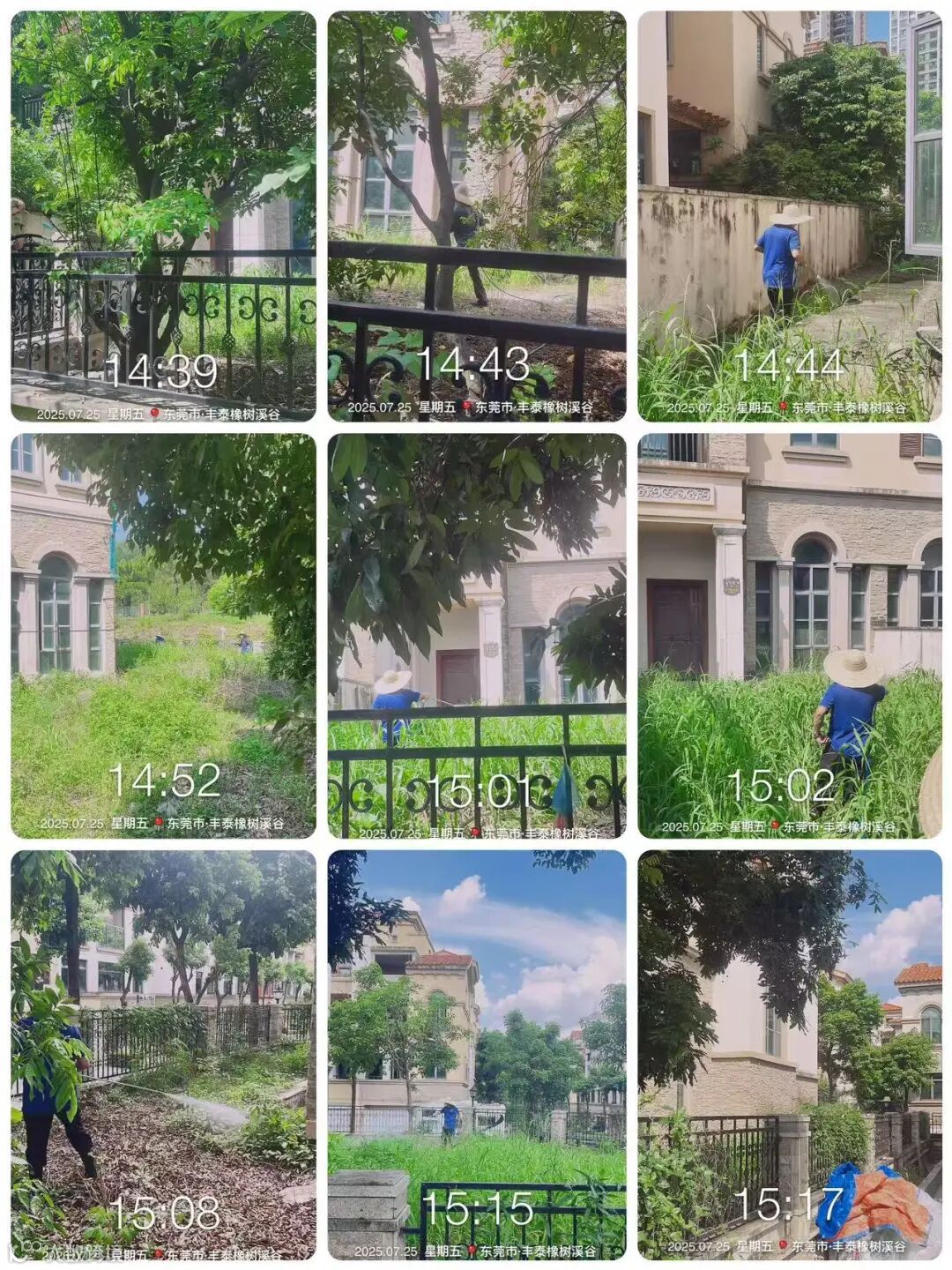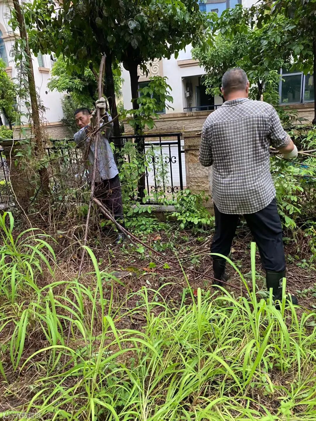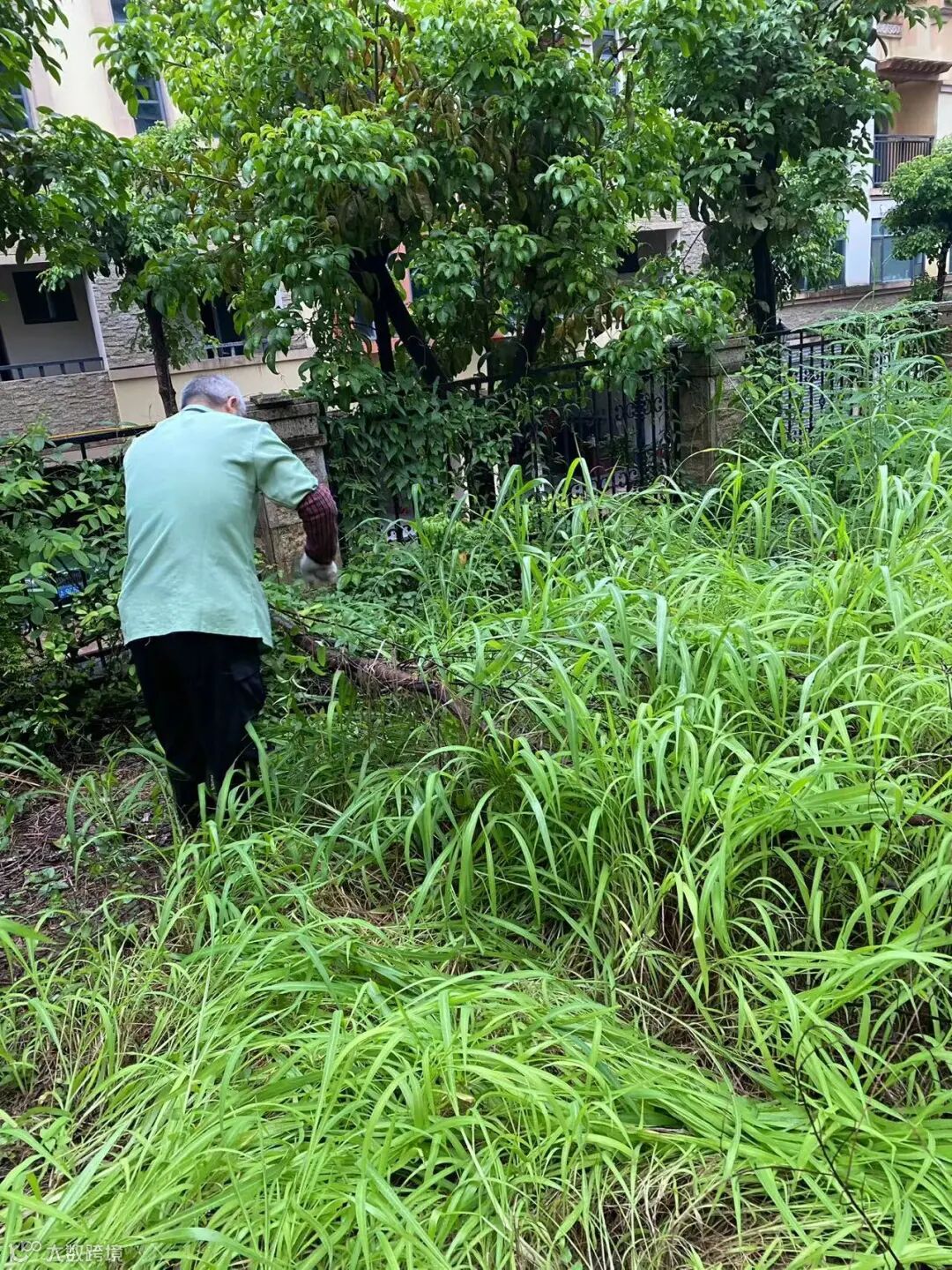 别墅区空置房院子杂草.杂树清理