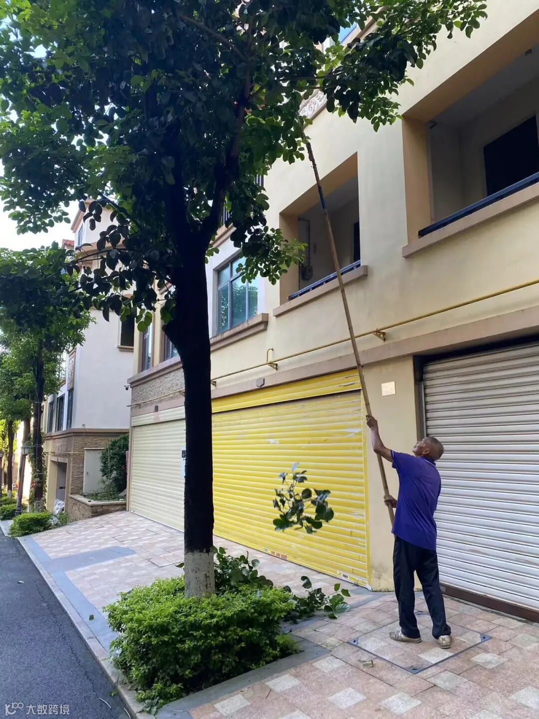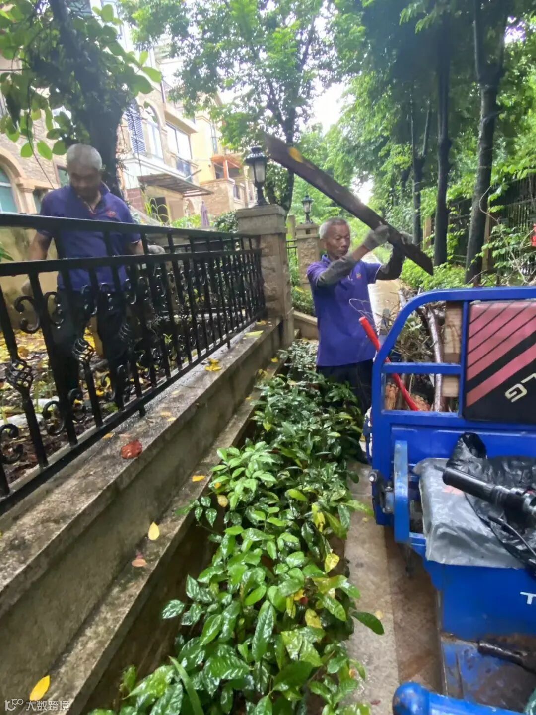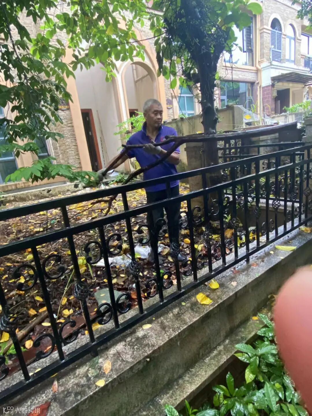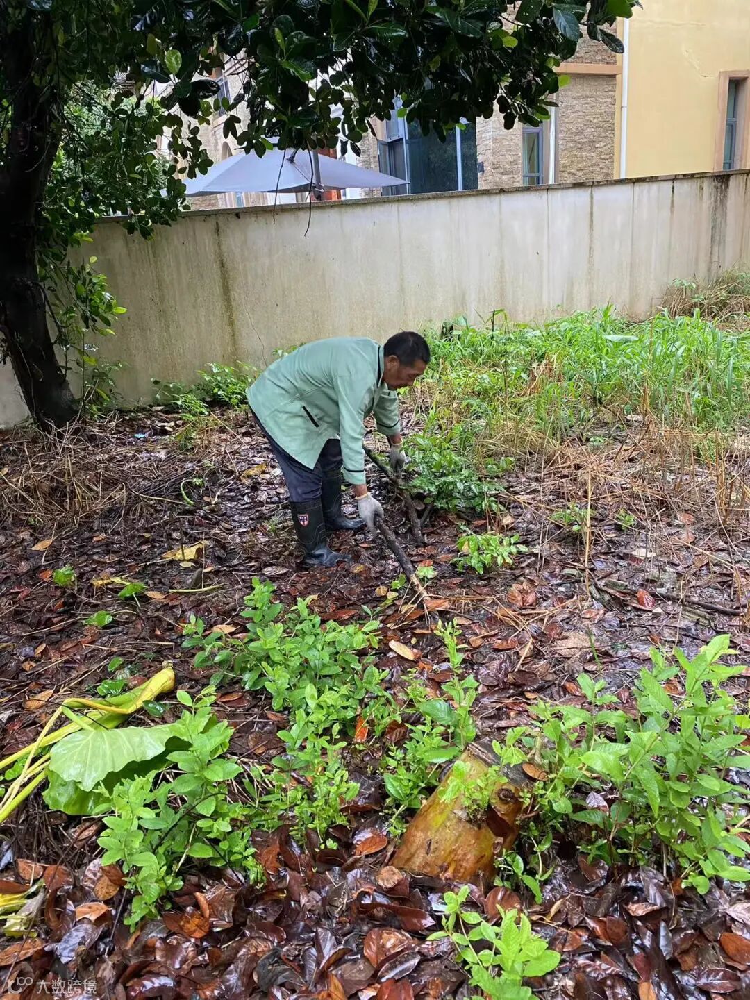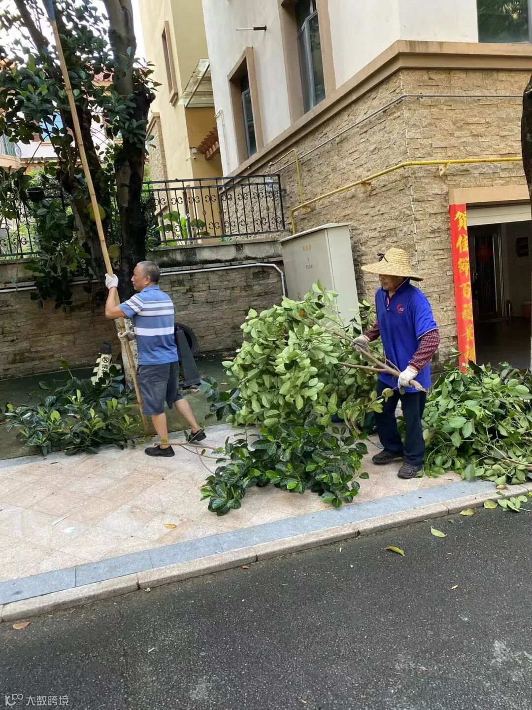 别墅区空置房院子杂草.杂树清理