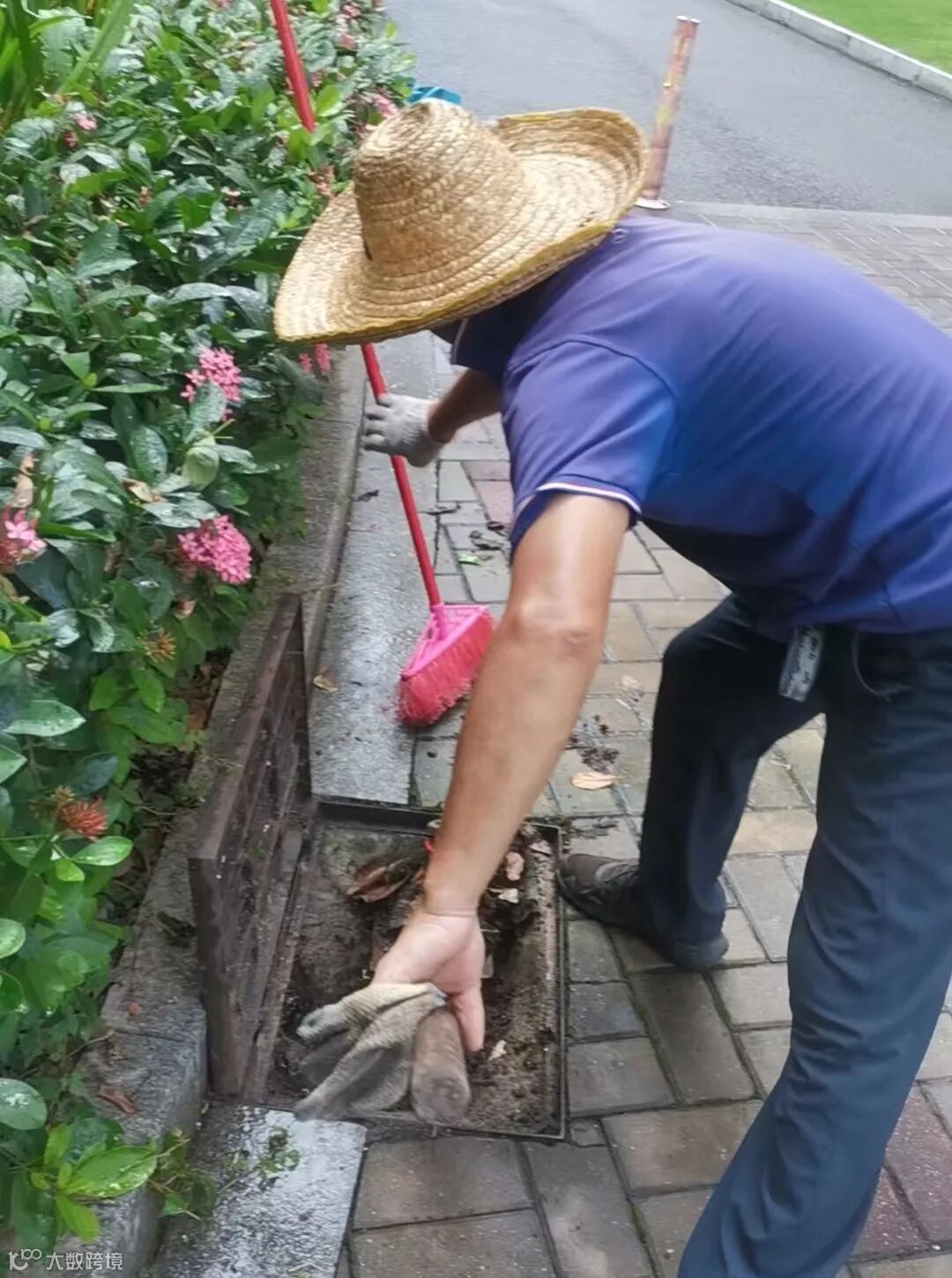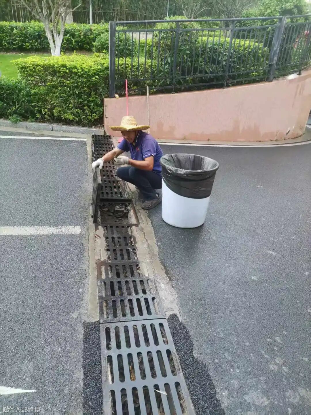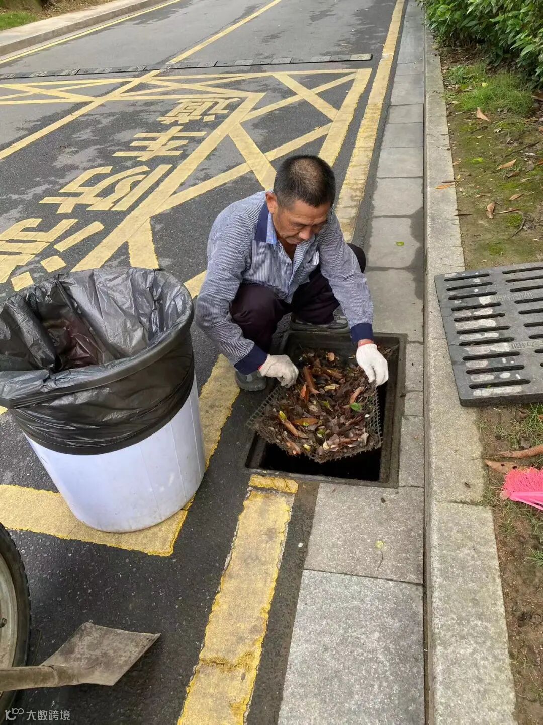 小区排水沟枯叶及杂物清理