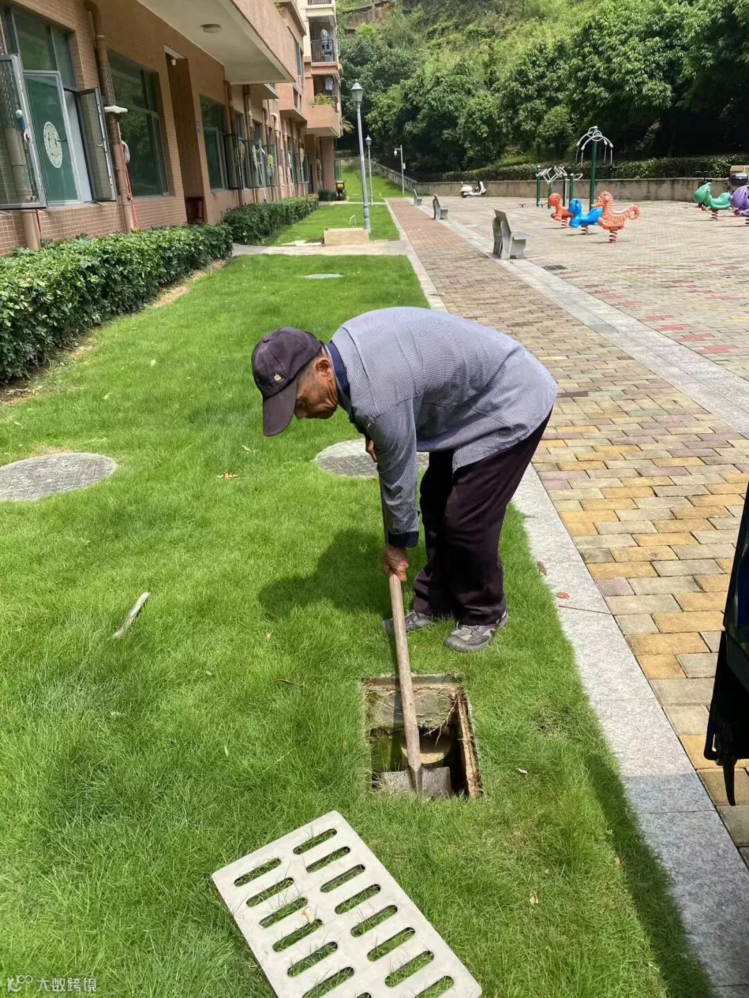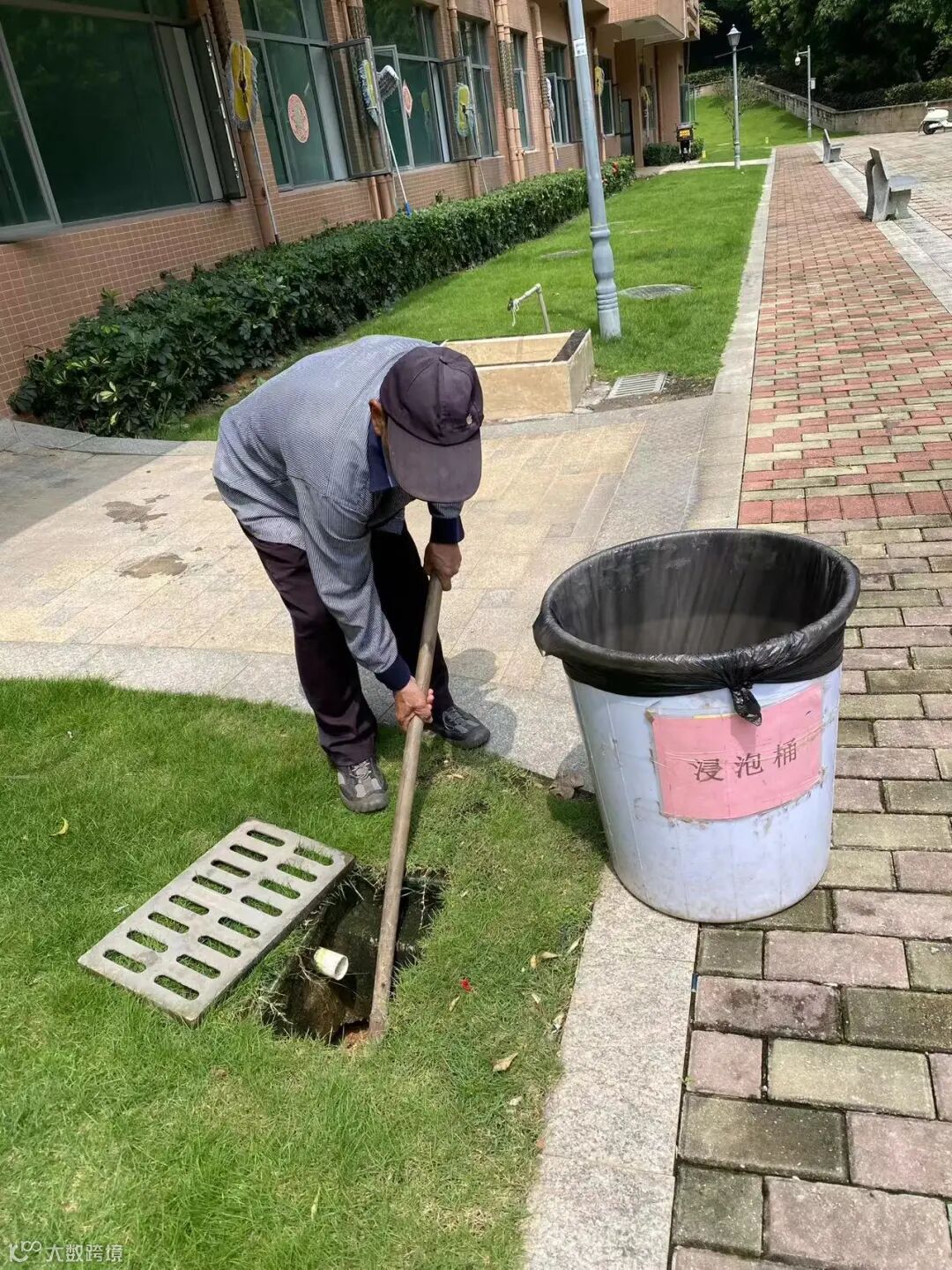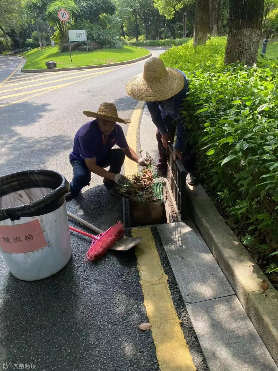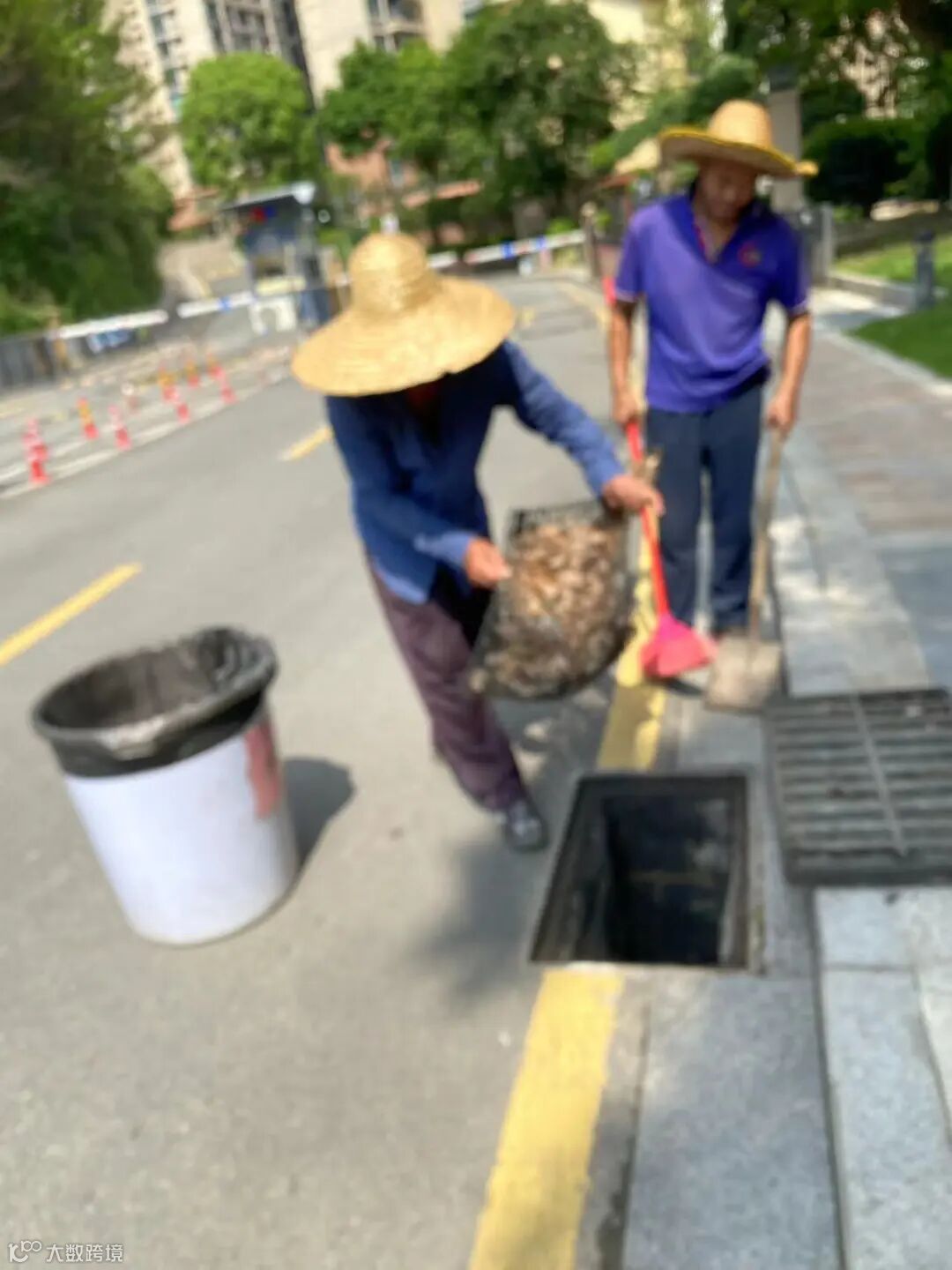 小区排水沟枯叶及杂物清理