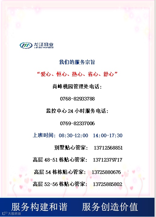 您好!为维护楼栋天台设施设备和您的人身财产安全,物业服务中心温馨提示: