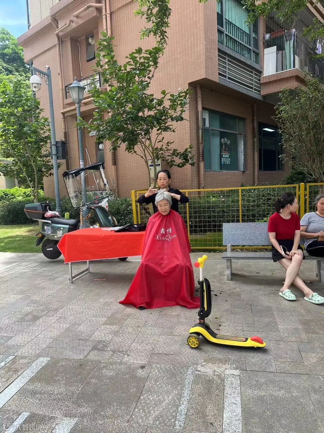 活动现场,美发师手势熟练,在美发过程中不时与居民交流、耐心询问发型要求,一个个银发老人、小朋友们在他们的修剪下都变得神清气爽、干净利落。有的老人说:“年纪大了,外出不方便,能在小区里免费理发太贴心了