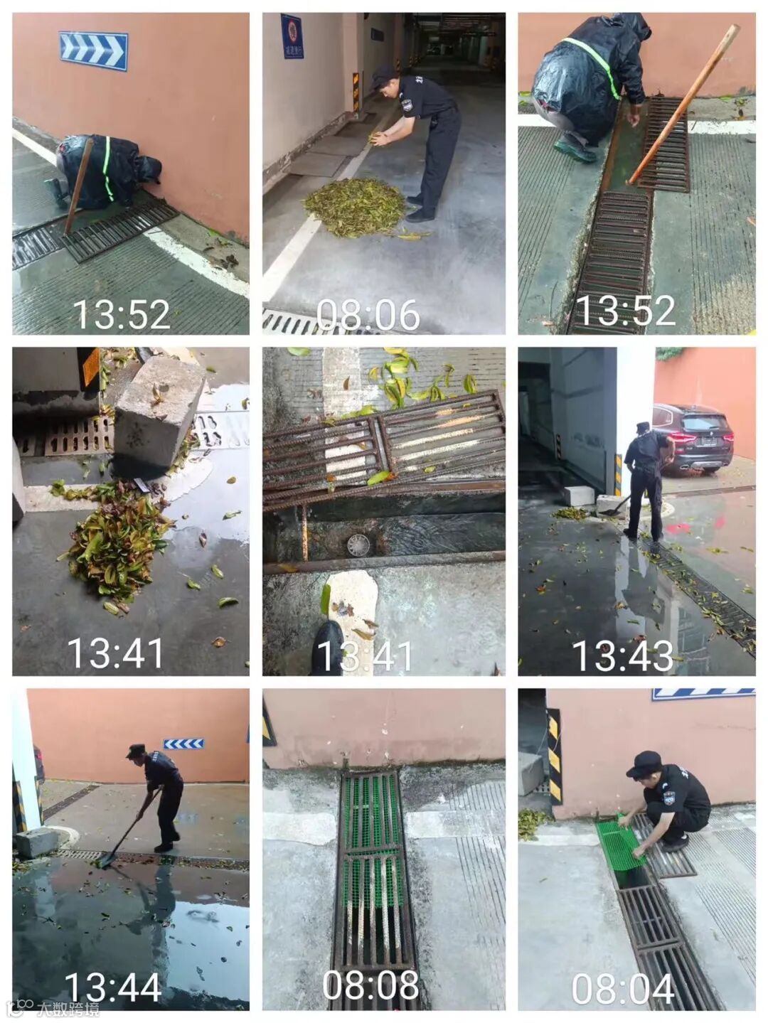 车库排水沟杂物及蜘蛛网清理