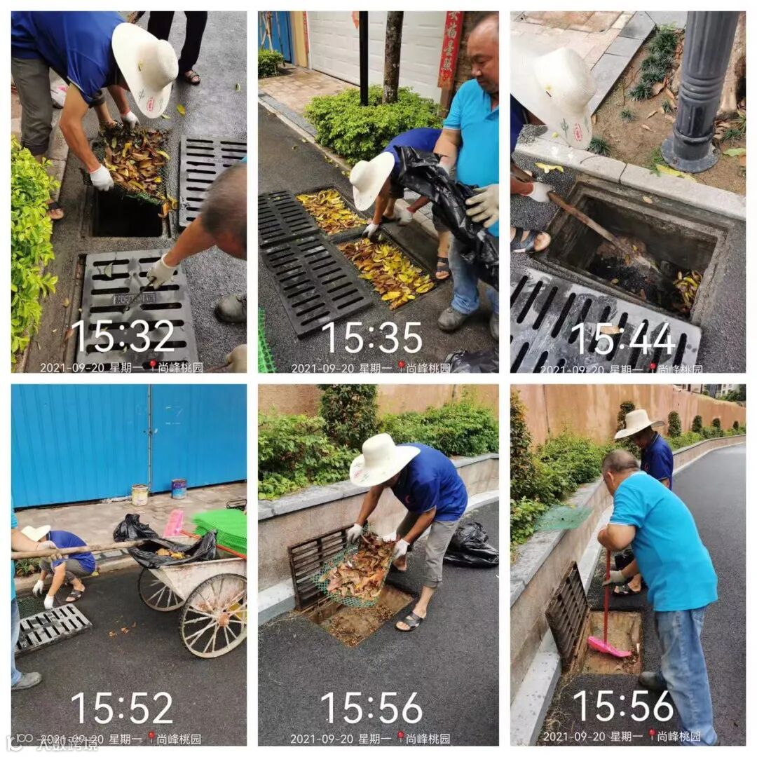 雨天对排水沟落叶进行清理