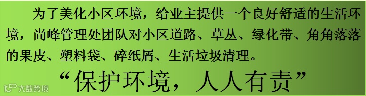为了创造一个优美舒适、安全文明的居住环境,我们不断的改善、提升、我们的物业服务水平,让广大业主朋友了解尚峰桃园管理处为小区建设所做的努力。现将我们12月份第五周工作简报呈现于您,以便您能够全面地了解我们的服务,同时也敬请您提出宝贵的意见,让我们把工作做得更好。谢谢!