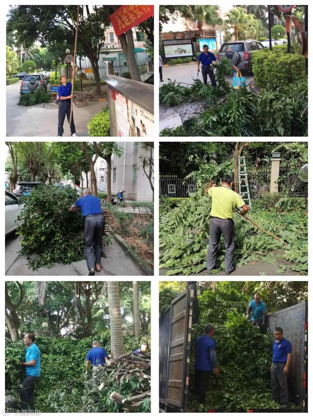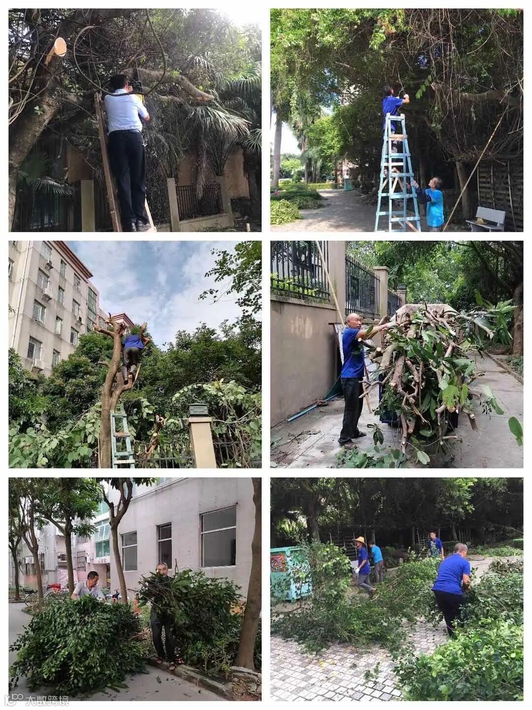一.对小区高枝树林修剪,绿化内垃圾清理:
