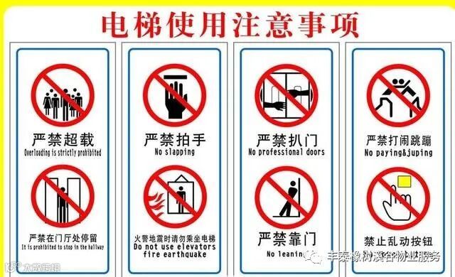 电梯安全使用:幼儿乘坐电梯需由家长陪同;请勿随意拍打按钮及随意按动警铃按钮;请勿在电梯轿厢内嬉戏打闹;请保持电梯轿厢内清洁: