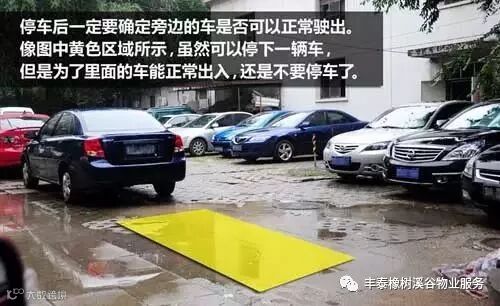 停车或是离开前,要观察车位周围的情况。比如地锁,栏杆,或是小孩,宠物等有没有被碰撞的危险,避免对他人造成伤害的同时,也避免给自己造成麻烦。另外,很多不法分子也会选择在小区内下手,因此请您在停车的时候不要把贵重财物放在车内,并放到人相对比较多或者流动比较频繁的地方,保证安全。