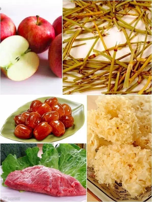 材料:雪耳20克、苹果2个、麻黄8克、瘦肉200克、蜜枣3个。