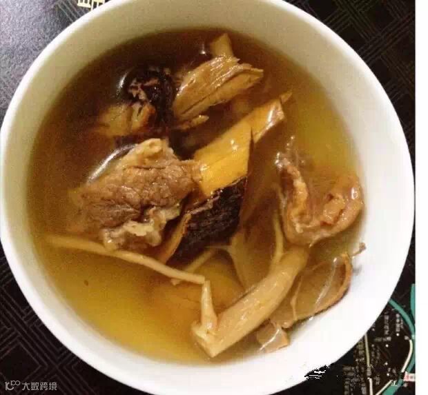 做法:猪骨在滚水中焯一下,飞去血水和肉腥味。将准备好的材料一起放入电压力煲中,加水,煲30分钟即可。若用的是老式汤煲,先大火滚10分钟,然后转小火煲1个钟头。临上桌前,在煲够火候的汤水中加适量盐调味即可。
