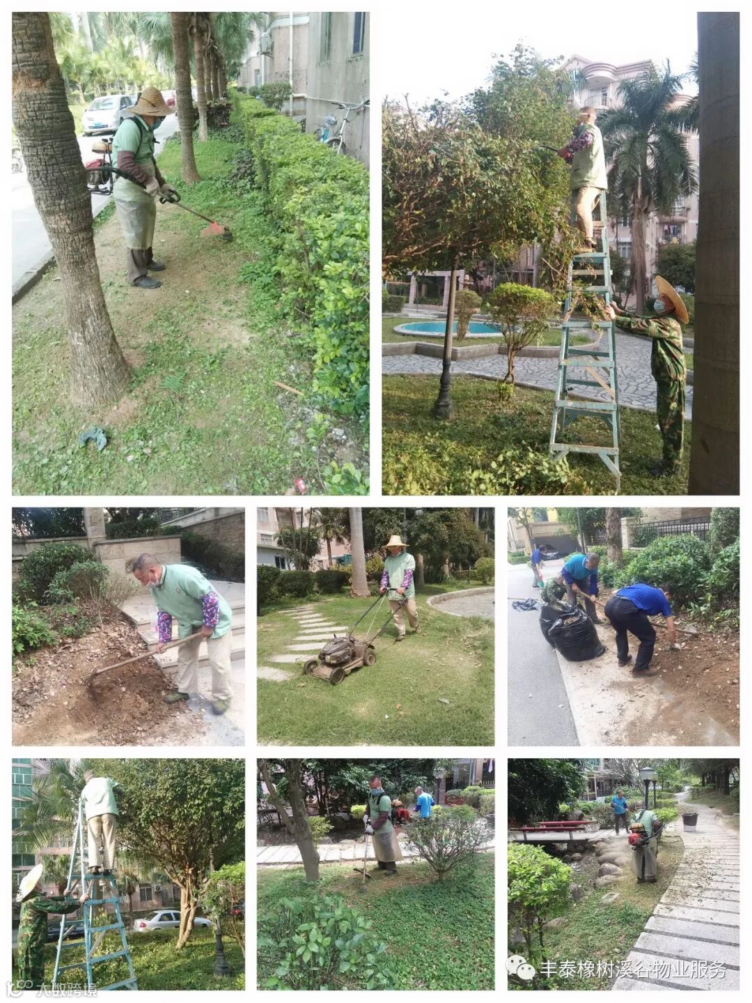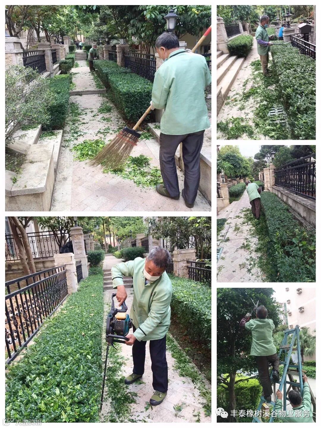 二、别墅高枝修剪、补种,提升小区绿化环境:
