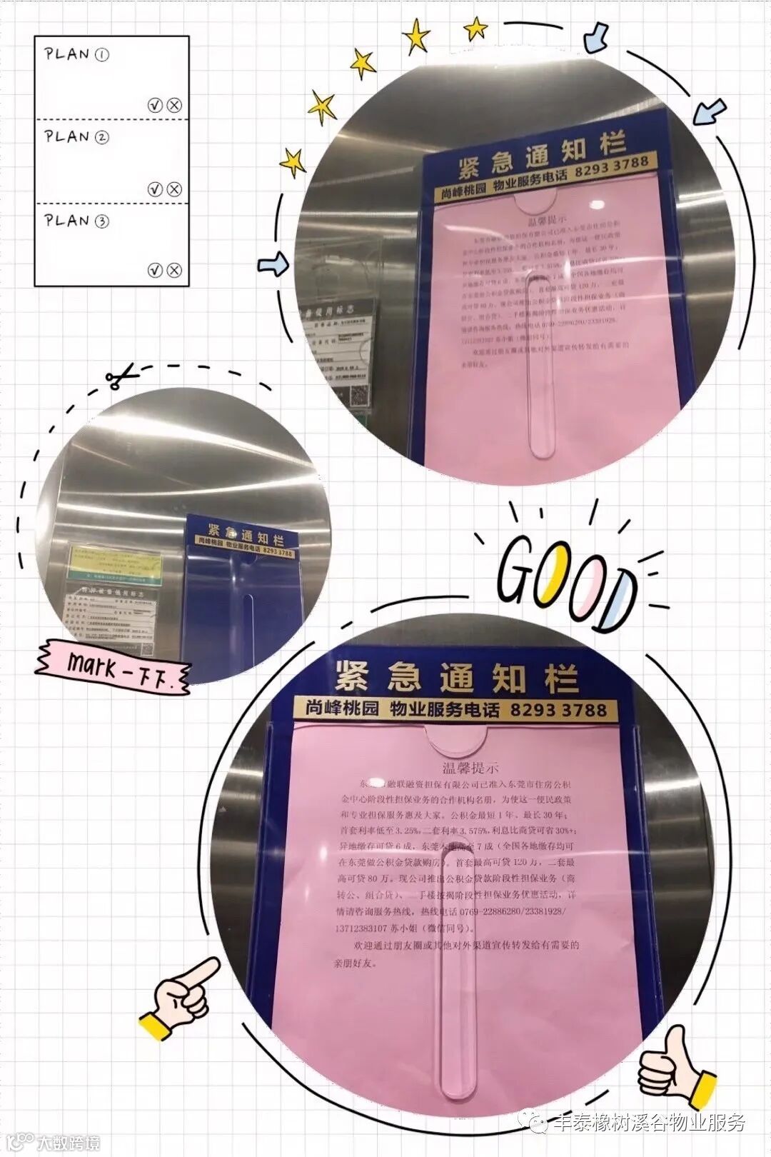 三、日常通知提前发放,将小区管理规范提示与影响业主生活事件及时告知: