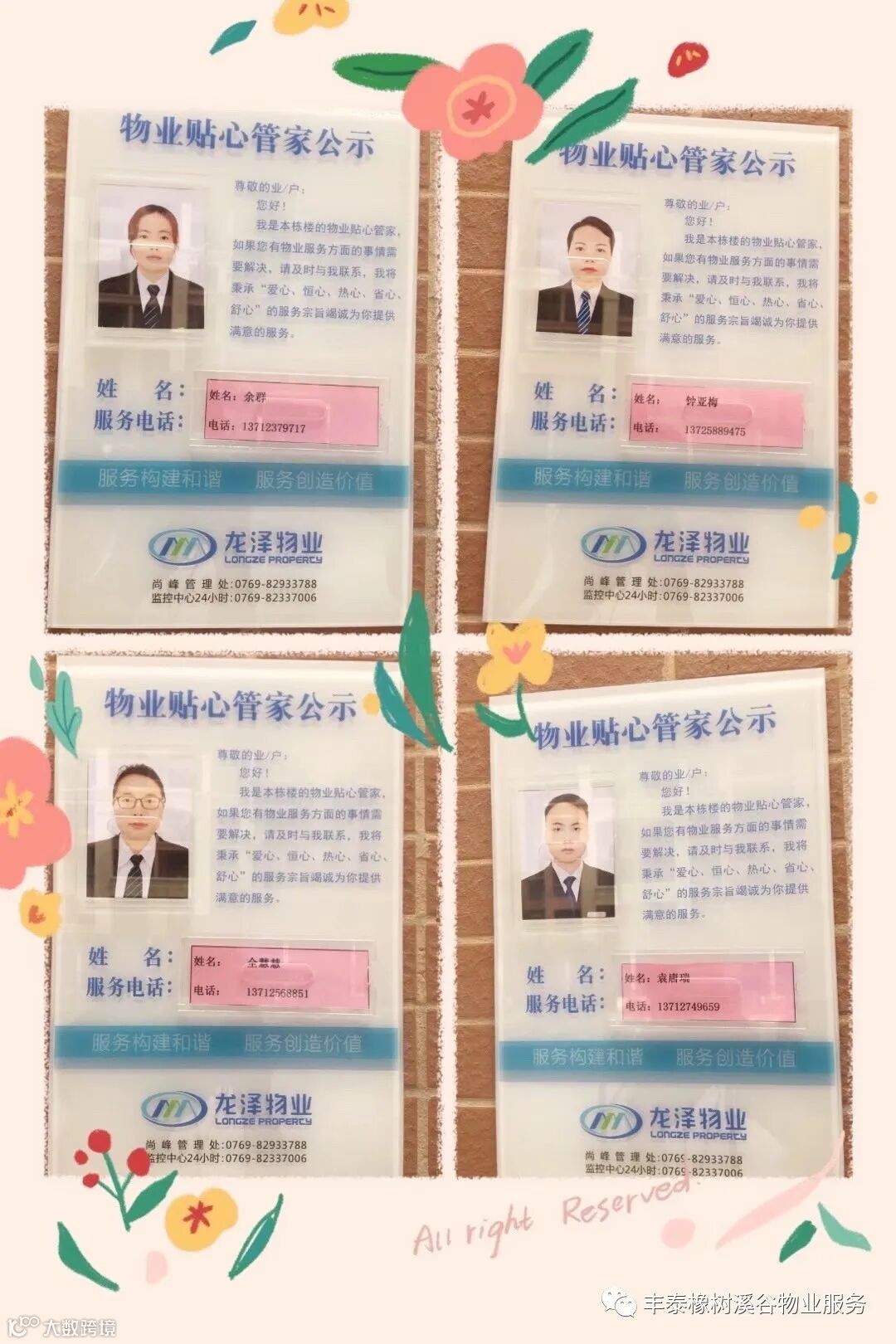 “ 服务构建和谐,服务提升价值,管理处全体员工竭诚为您服务”
