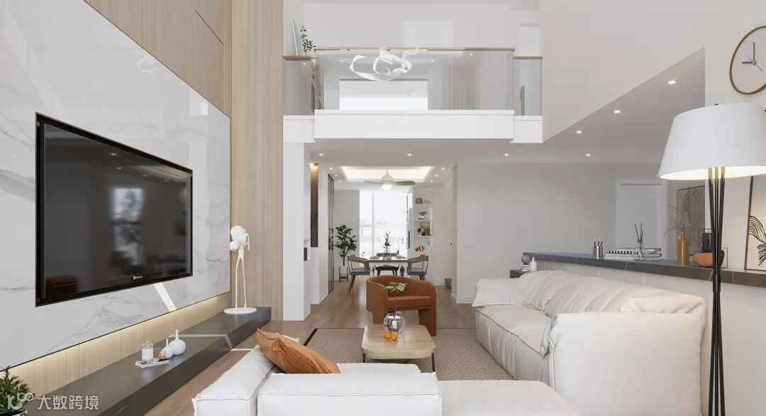 开放式空间布局与落地窗的搭配,空间通透明亮。墙面、地面以及家具陈设乃至灯具,外观简洁流畅,色彩和谐,营造出简洁舒适的居家生活。