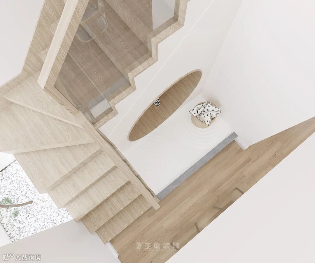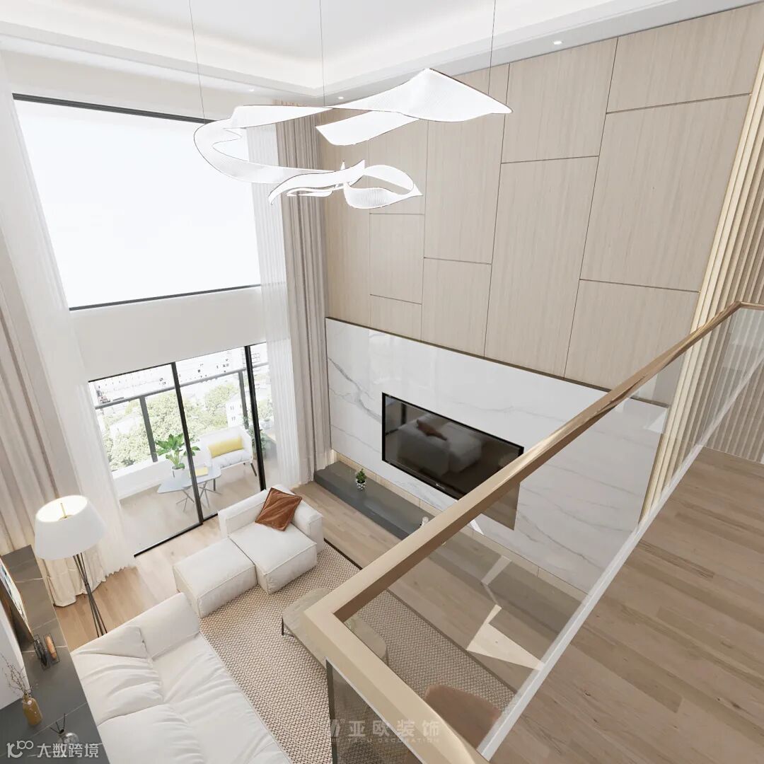 中空客厅设计,在大窗户的采光烘托下,让整个空间通透明亮,清新自然。带着无限遐想的留白画面加上大面积的原木元素覆盖呈现出诗意清逸的淡然之感。