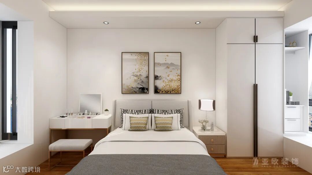 主卧室在色彩方面秉承了传统古典风格的典雅和华贵,但与之不同的是加入了很多现代元素,呈现着时尚的特征。在配饰的选择方面更为简洁,少了许多奢华的装饰,更加流畅地表达出传统文化中的精髓。