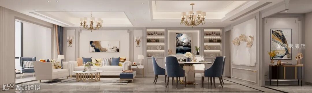 在颜色搭配上,全屋还是以简单为主,米白色为主色调,然后加入适量的靛蓝色以及金属色,在视觉上起到一定的点缀作用,呈现出整个家的品位。