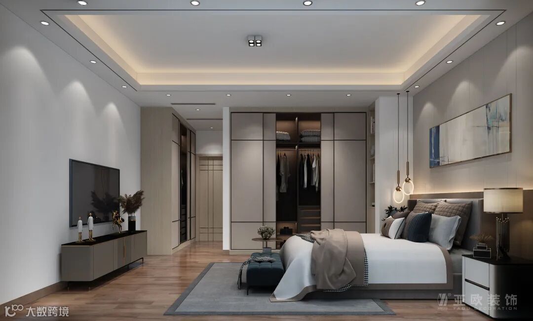 对于卧室而言,人一生的⅓时光都在这里度过,所以有关卧室的装修也是一个家庭的核心所在。以充满知性的现代风格,理性的线条,沉稳的调性,辅佐精致的艺术装置品,去勾勒出层次丰富且空间多元化的整体设计。