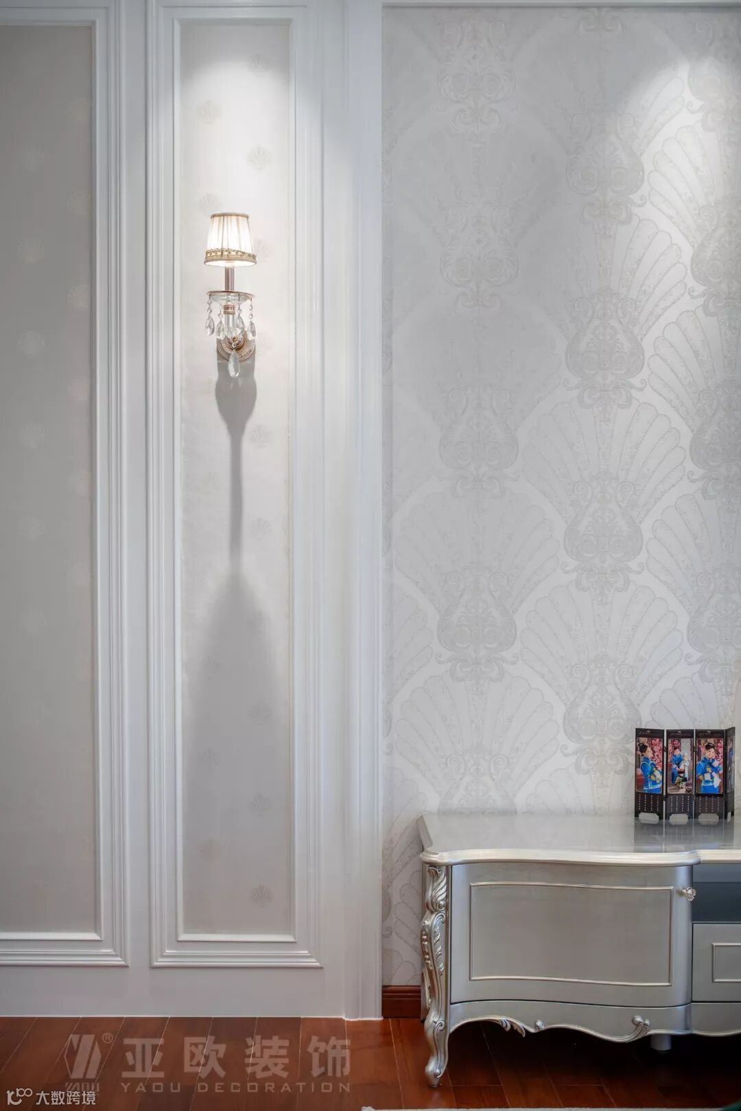 在白色的墙面上点缀一盏显目的壁灯,给予人一种幽雅清新之感。