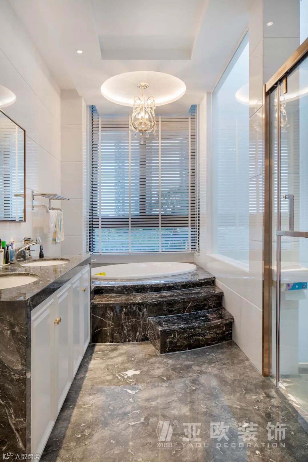 黑白花纹的大理石,自然简洁的质感,让整个卫生间都显得更加优雅高档。