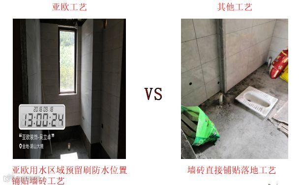 用水区域铺贴瓷砖工艺对比