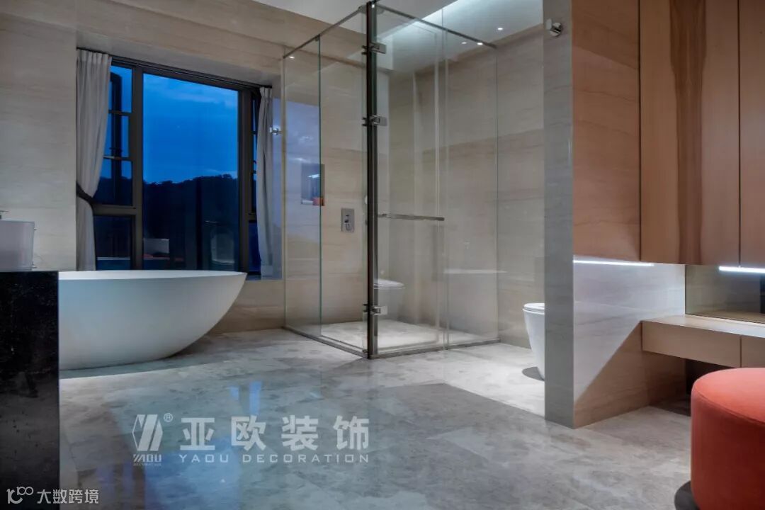 卫生间选用的浅灰色的大理石,没有用过多的装饰,极简的搭配亦是雅致的韵味。