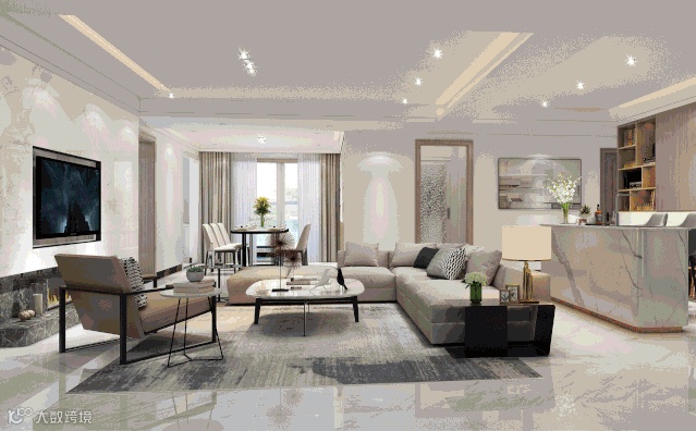 由于线条简单、装饰元素少,所以需要我们完美的软装配合,个性的灯具、异形地毯、家私沙发、餐桌、窗帘和床单、装饰画等的陪衬,使整个空间更具美感。