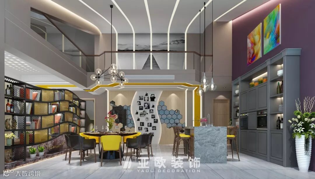 案例中我们以现代风格为主,工业风元素加以调和,整个空间强调功能性设计,线条简约流畅,色彩对比强烈,现代感极强。此外,利用衔接天花与墙身的透光板造型,以玻璃、钢铁构件、镜面等新型材料作为辅材,能给人带来前卫、不受拘束的感觉。整个空间以浅黄色墙漆为大面积基调,大胆的运用纯黄、天蓝、紫红等高纯度色彩,大胆且灵活,不单是对简约风格的遵循,也是个性的展示。