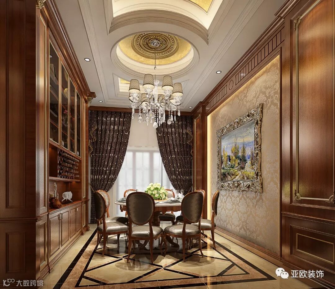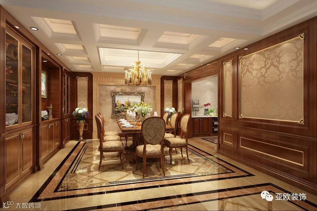 沿着楼梯往上走,主人重视公共空间的打造,原木护墙,嵌入式金属铜条将美式新古典在精细材质上的运用发挥得淋漓尽致。舒适的空间便于营造轻松的就餐氛围,与家人一起制作甜点,享受惬意的休闲时光,再平淡的日子也能从精心准备的食材里获取到幸福。