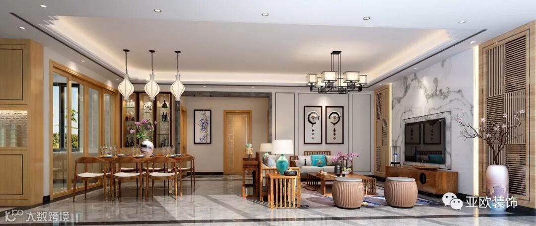 此项目业主为70后,喜欢中式风格,希望家里能有温馨轻松的环境氛围,因此定位为以原木色为主的新中式,公共区域地面装饰材料以用灰色仿大理石瓷砖为主调,显得稳重、高端、大气。墙面装饰以白色乳胶漆为主,电视背景墙以山水纹大理石为主,整个立面空间搭配有现代气息的不锈钢条,再有中国风韵的装饰画及装饰品来强调中式风格,让墙面不失中韵又不沉闷繁杂。天花则尽量精简,起到一个修饰及辅助灯光作用。卧室则以墙面大量留白,地面暖色地板为主,加以局部山水画点缀,整个空间敞亮、温馨、大气。最终呈现给业主的是一个温馨、中意、大气、时尚的居家空间。