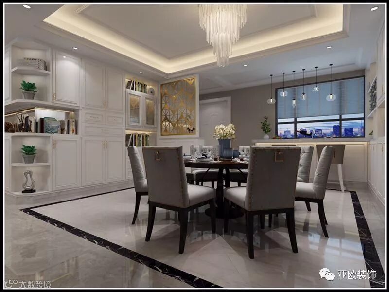 简欧风格继承了传统欧式风格的装饰特点,吸取了其风格的“形神”特征,在设计上追求空间变化的连续性和形体变化的层次感,家具门窗多漆为白色,在造型设计上既要突出凹凸感,又要有优美的弧线。