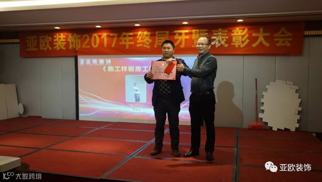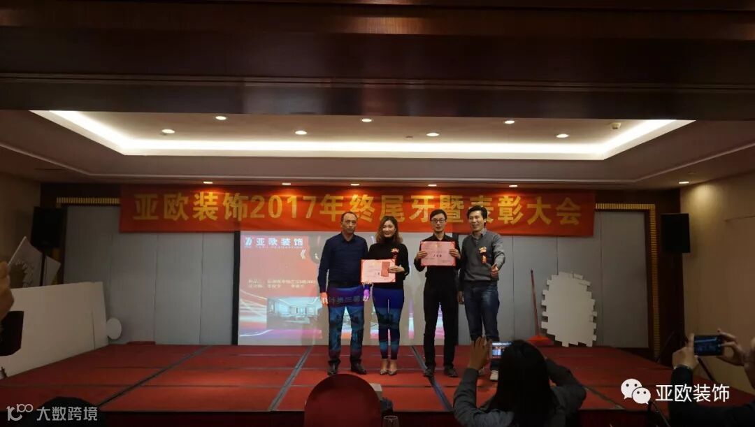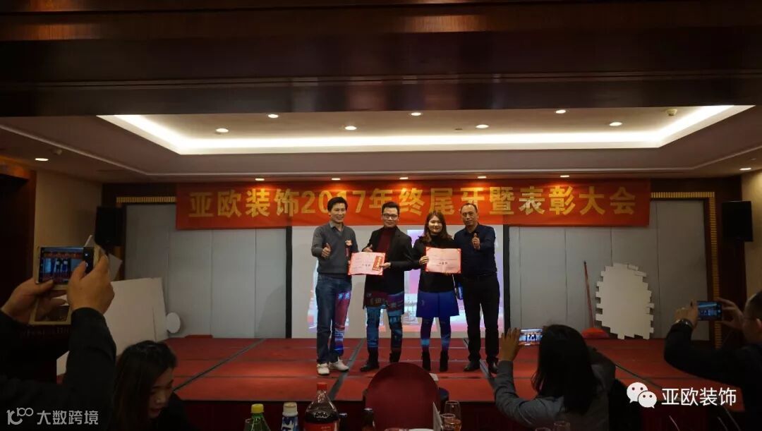 宴会上,相继宣布了“最具勤工员工奖”、“最具进步员工奖”、“先进员工奖”、“设计部最佳业绩奖”、“业务部最佳业绩奖”、“施工样板房工程奖”、“回头单突出贡献奖”、等优秀员工奖项获得者,并当场颁发荣誉证书及奖金给获得以上奖项的优秀员工。
