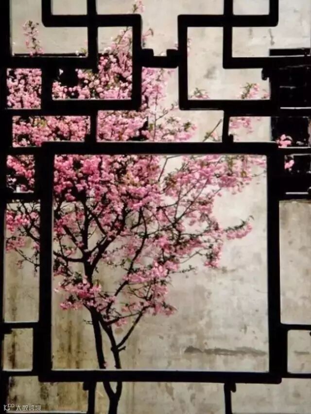 雕花窗,窗外花正放。
