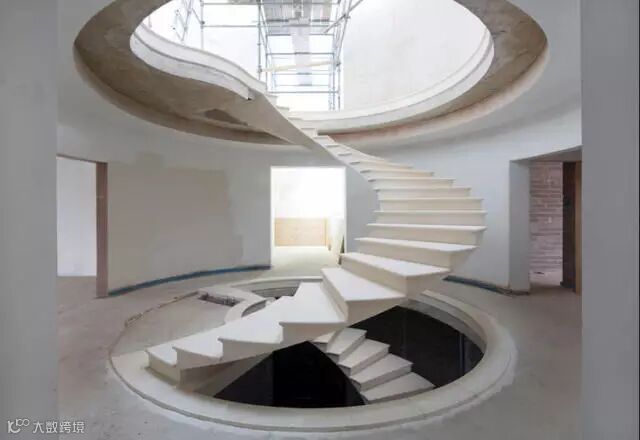 不过最近有人做到了,在英国的一处私宅里,有两段旋转角度达到320度的楼梯,旋转的同时,轻微地扭转,在两层楼之间轻盈地搭着。