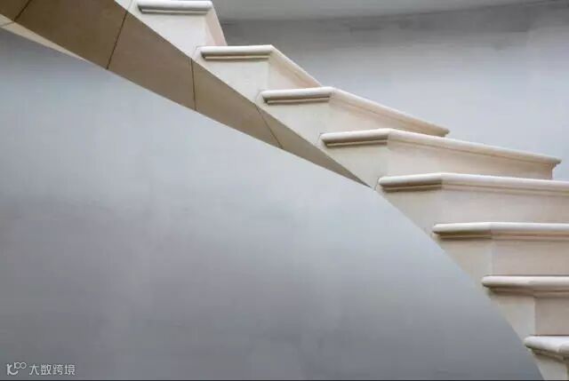 再配合上精选的French Combe Brune 石灰岩柔和的乳白色及光洁的质感,这段楼梯,在各个角度看都非常优美。