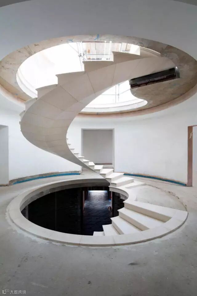 螺旋楼梯最经看的角度,总是俯视。一是因为这个角度最能突显出几保美感,二是因为螺旋楼梯的设计难度比较大,并非所有的设计师都能在保证楼梯稳固的同时,拗出平视和仰视时所能欣赏的柔美、轻盈的线条。