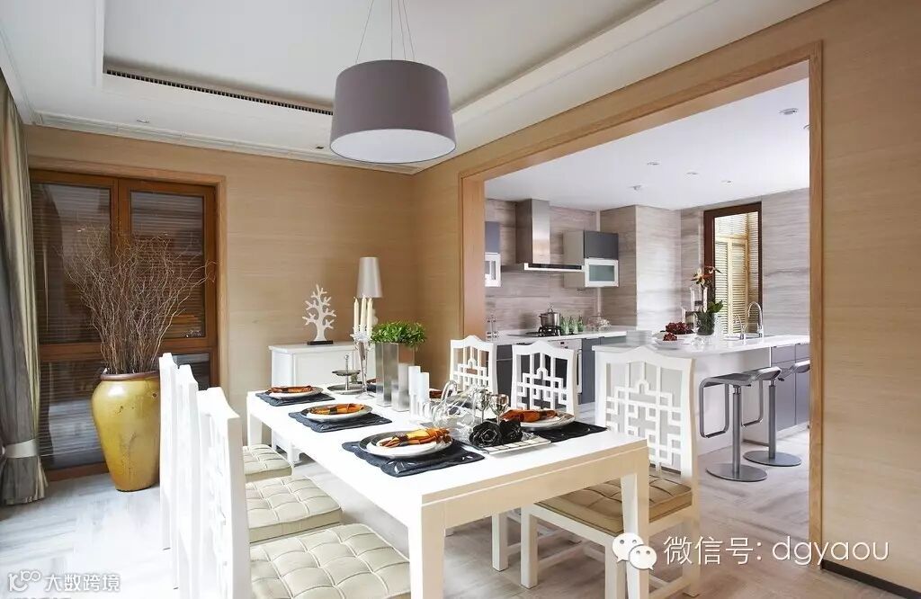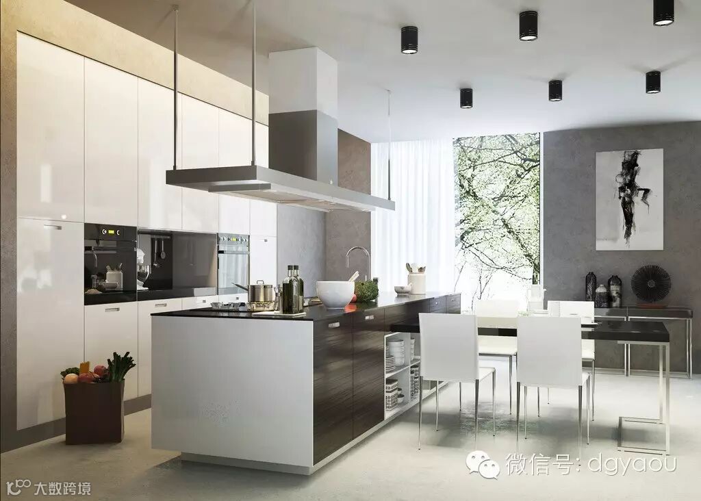 2、家具橱柜风格要统一。如果你的开放式厨房是餐、厨、客一体式的,就要考虑客厅、餐厅的家具与厨房家具的和谐,确保“开放式厨房”能自然地融入到整体家居氛围中。