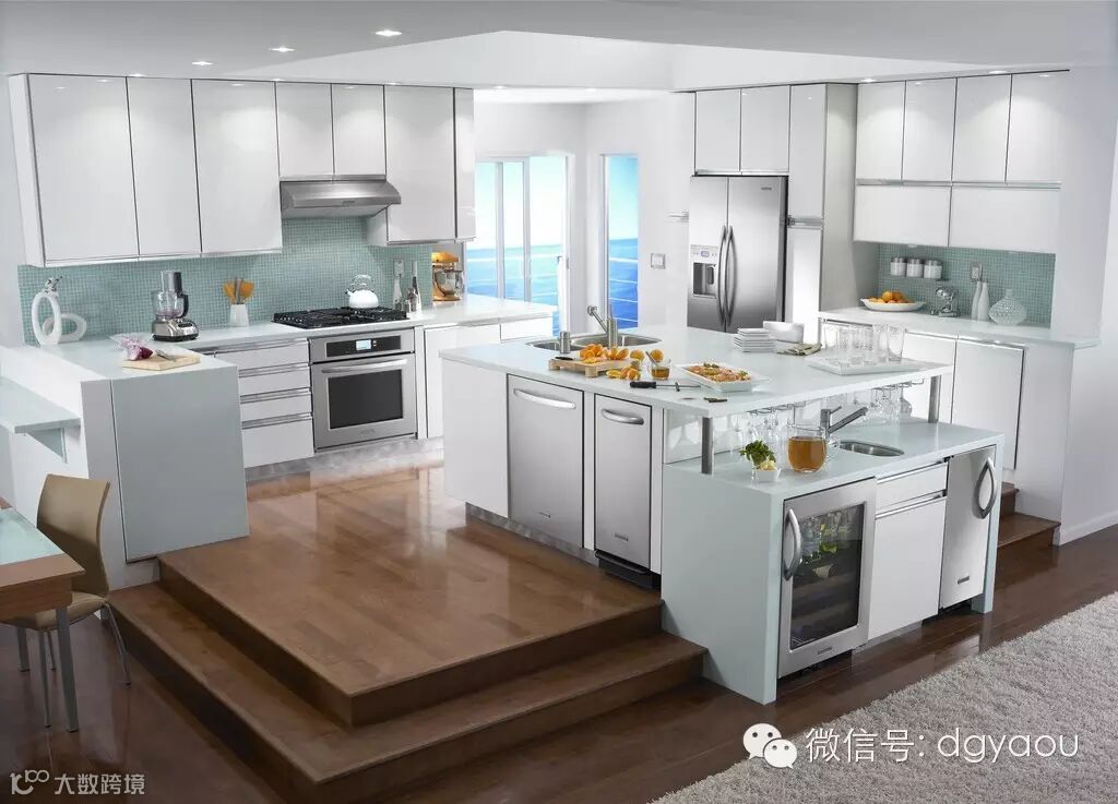 5、储物空间要留足。开放式厨房的台面不应放过多的炊具,以保证其美观性。因此需要橱柜的储物功能尽可能大一些,能将一切的“不美观”都装到柜子中。