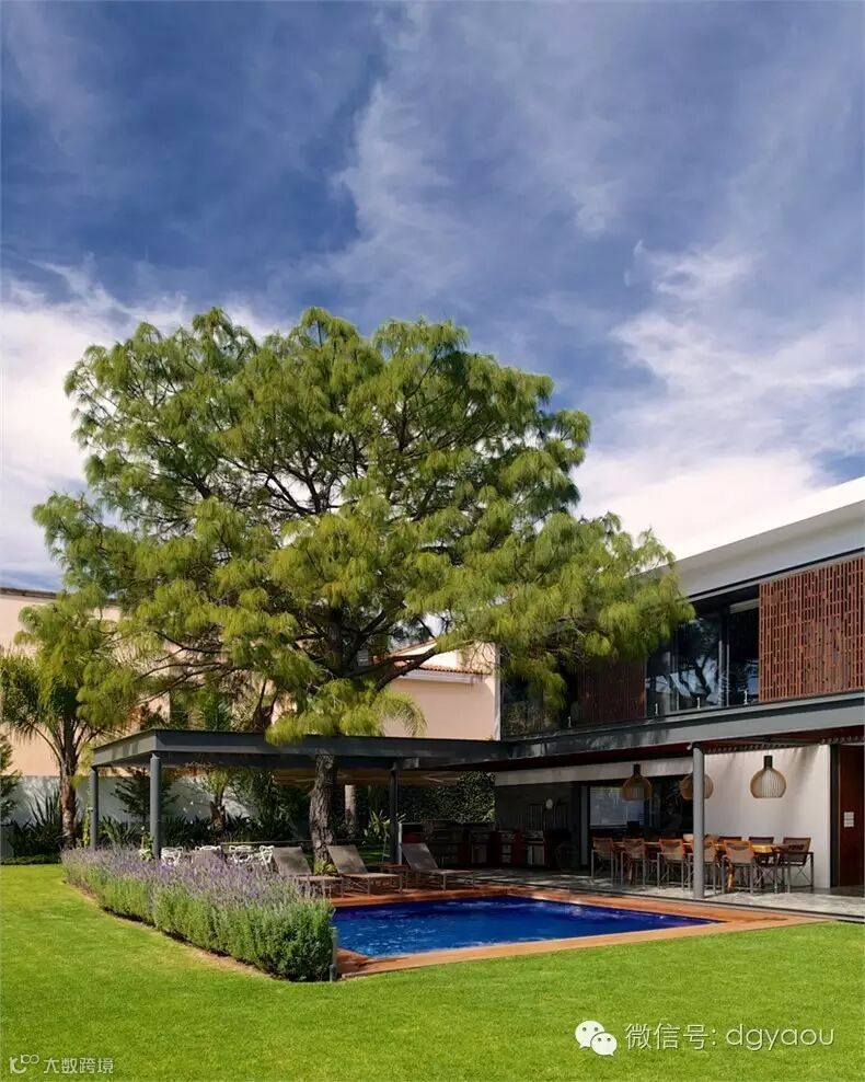 一方面,就像是房子的名字所暗示的,房子本身来源于对自然的一种信仰,这种信仰把建筑工地现有的一颗繁茂的大树和建筑设计融为一体,最终这棵树成了花园和房子住户社交活动的视觉对应点。另一方面,同样也是很重要的方面,树的天然存在有助于表现房子的特点,一个独具特色的寄托物(类似于中国的寄情于物)。