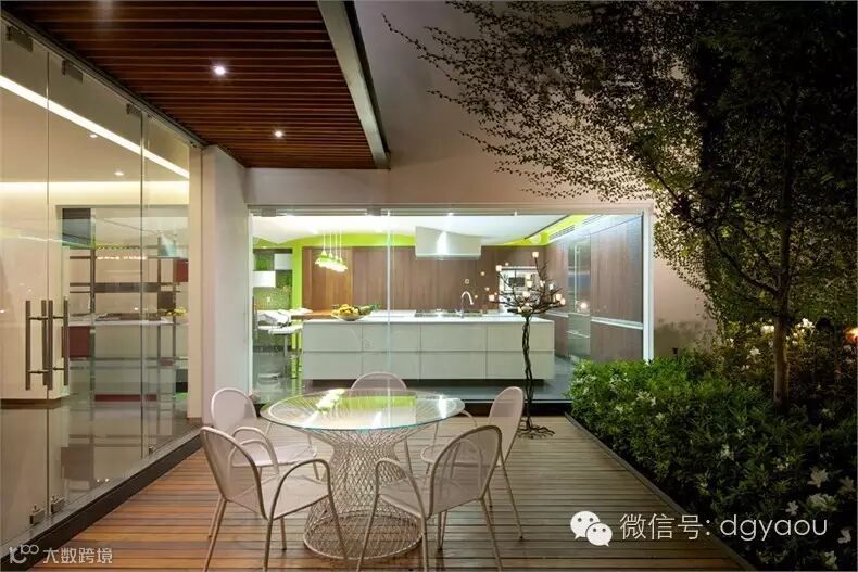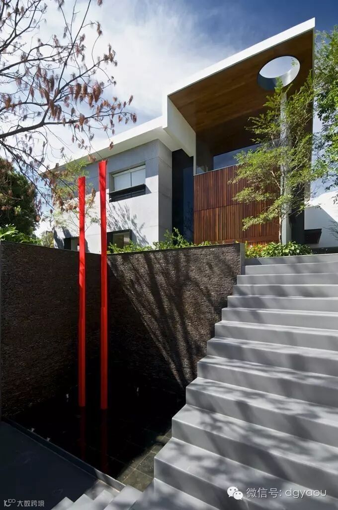 设计师试图让房子远离外面的世界(这里指城市),因而看起来更加的隐秘,藏匿于这梦幻般的花园中。由于房子开敞式的设计和精心选取的玻璃窗,由一连串明亮而又赏心悦目的空间而组成的地面层,完全向主副花园开放,建立一种室外自然美和室内清晰可见有趣而有连绵不绝的对话。通过这样的方式,本项目实现了之初的想法,而没有把房子和花园分开。可以这样说,房子贯穿于花园之中栩栩如生,同样的,花园参与到房子的日常生活之中。