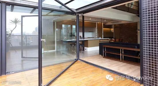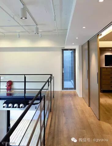 走廊的铁栏杆的内层用钢化玻璃作保护,对于有小孩子的家庭来说,设计时一定要充分考虑安全因素。