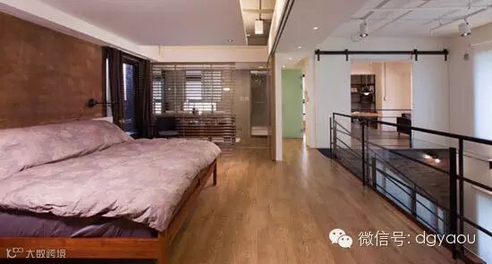 开放式的卧室设计,正对着采光用的大窗,白天光线充足,晚上都市的迷人夜景尽收眼底,让人身心舒畅。